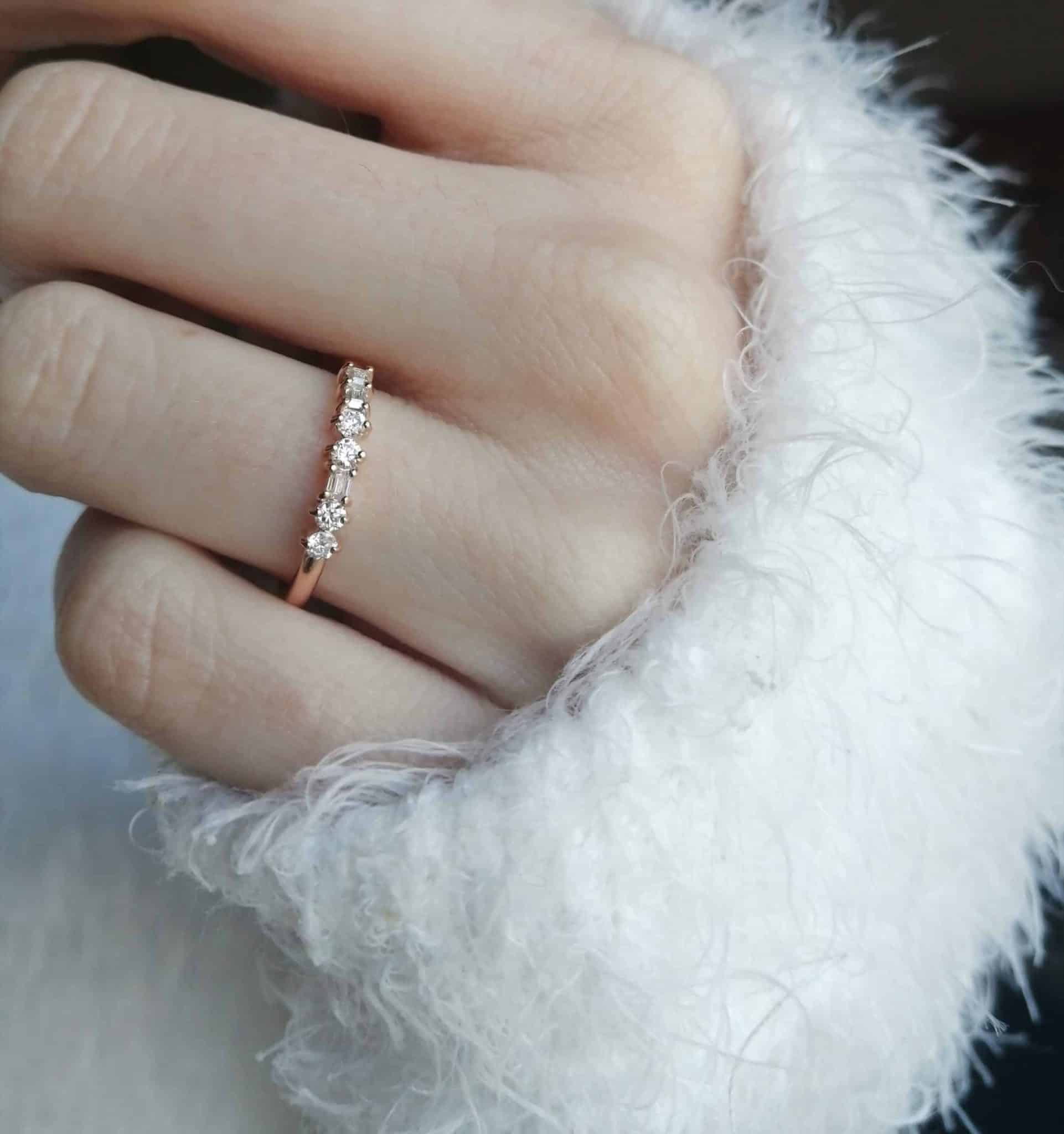 Alternatively, create a personalised birthstone ring that reflects your unique family! Choose from an array of gemstone colours for each month. Every one of our birthstone colours have been hand selected to ensure a visually pleasing effect as they sit together on your custom designed ring. Pick your perfect style - our slanted design with interspersed dainty white sapphires, or the more classic vertical or horizontal layout. Each design beautifully showcases your chosen birthstones. This custom designed jewellery is a precious reminder of your very own tribe!