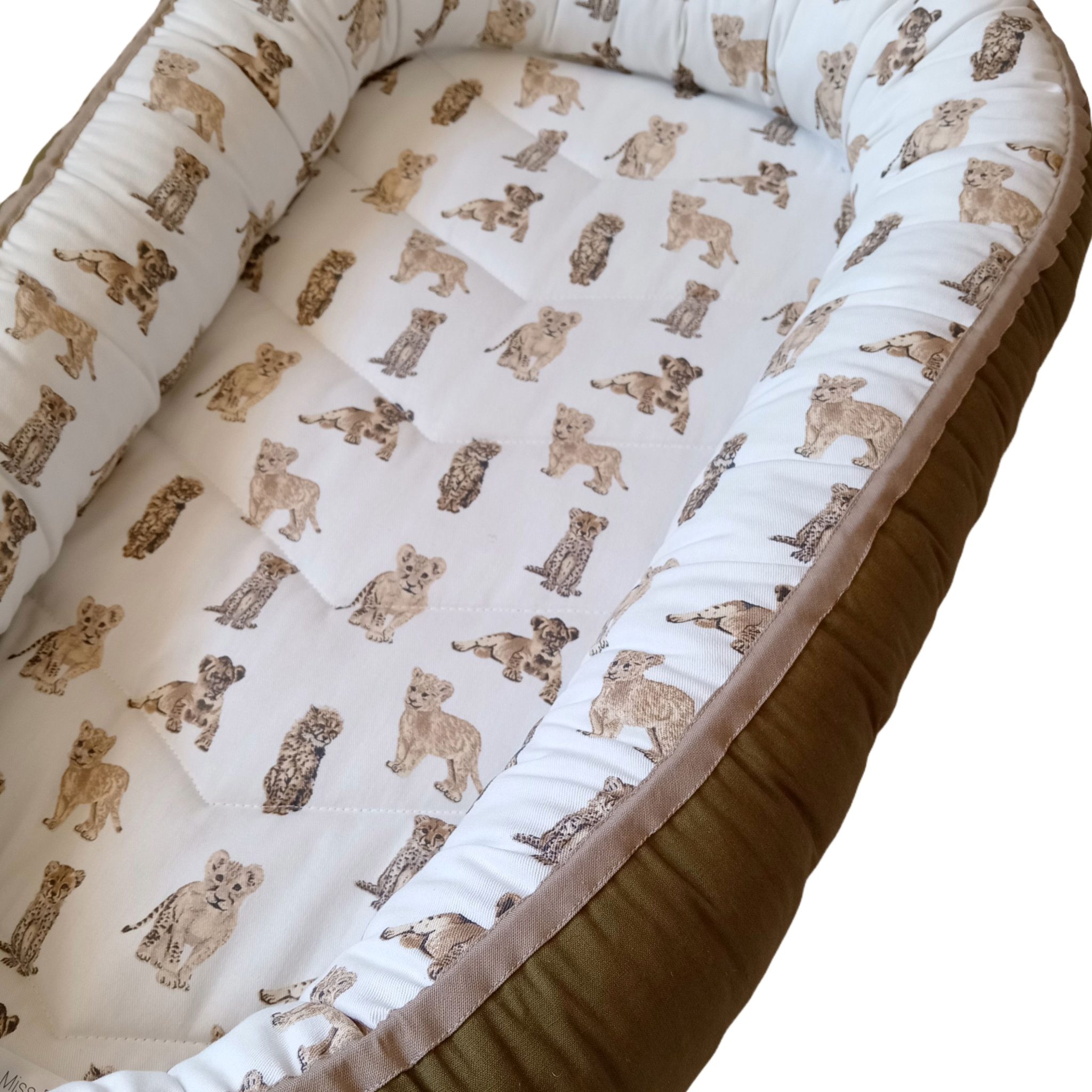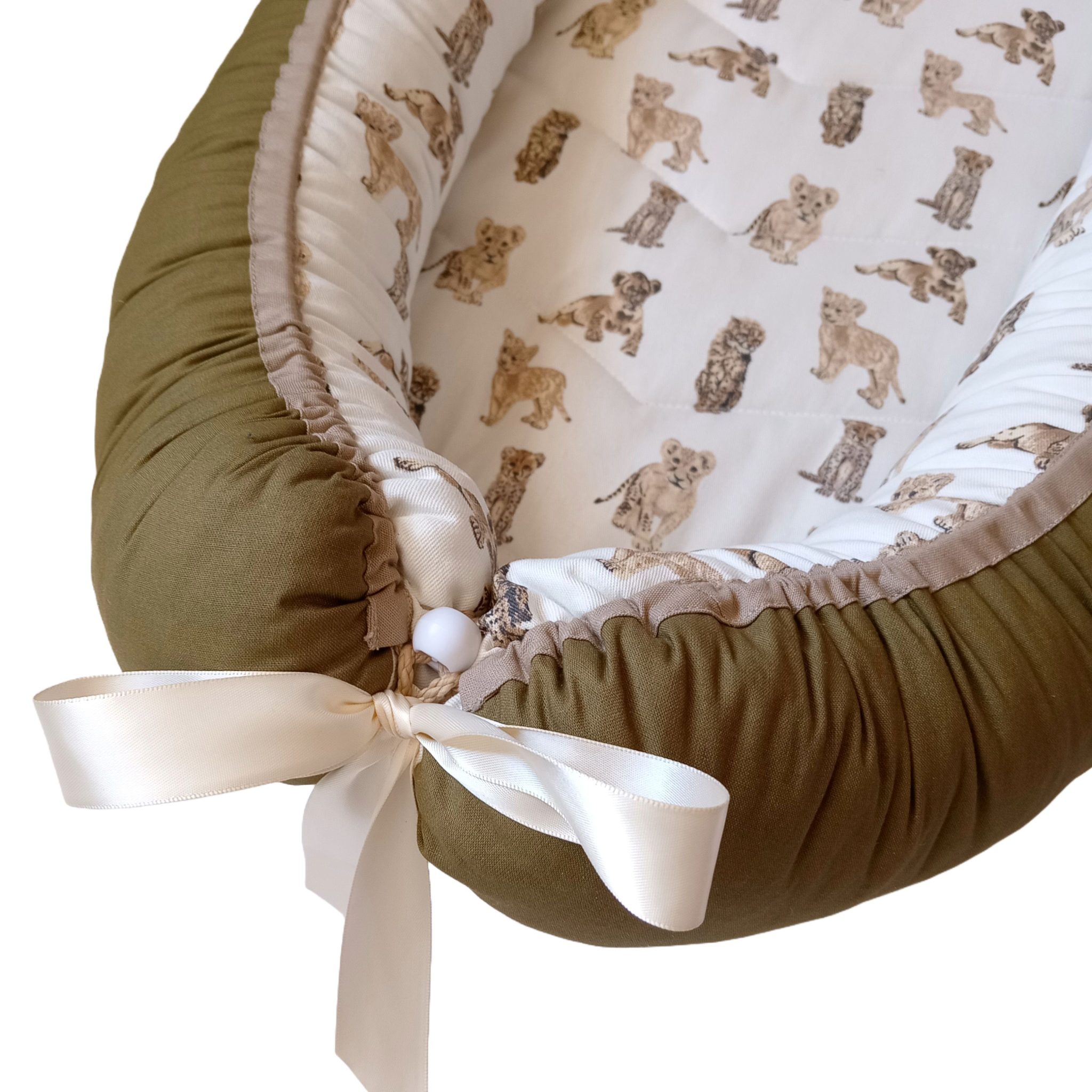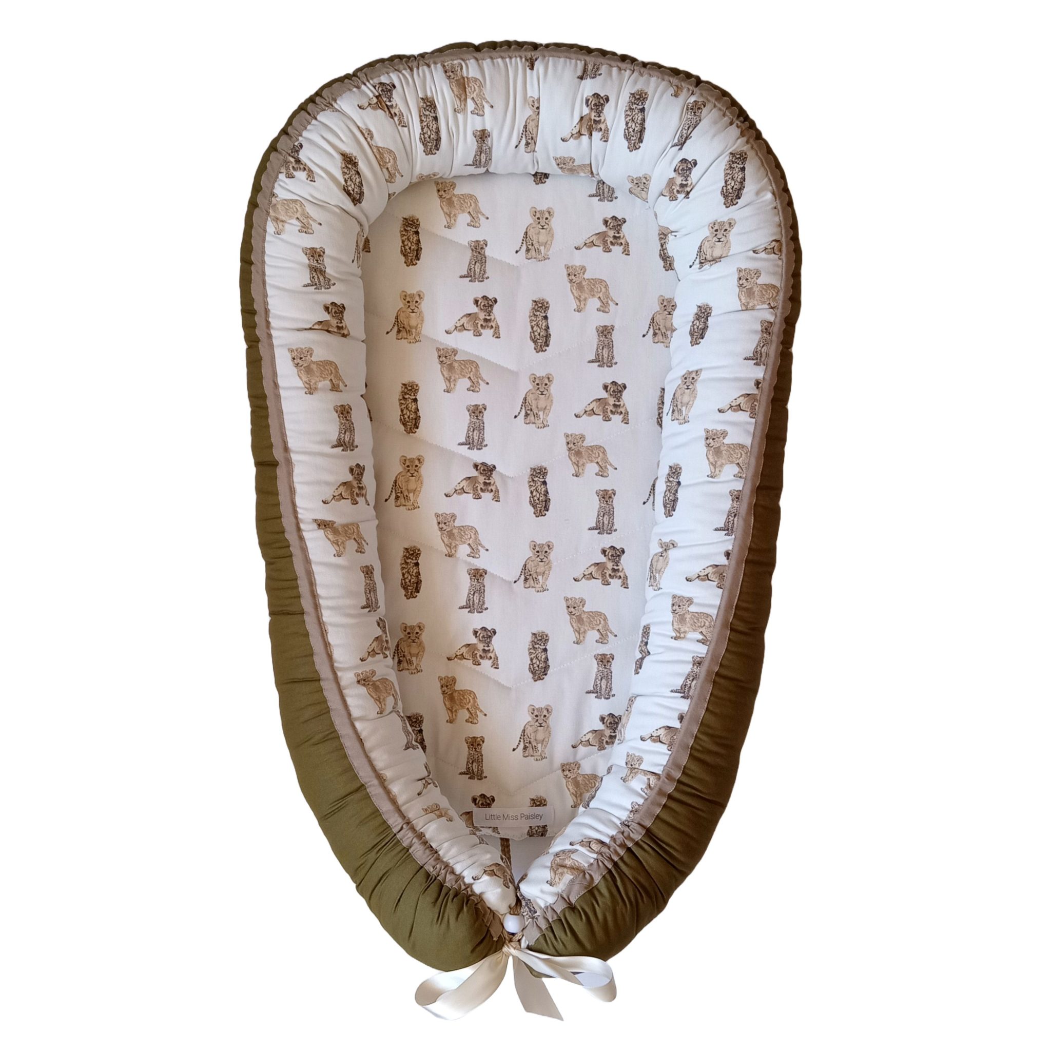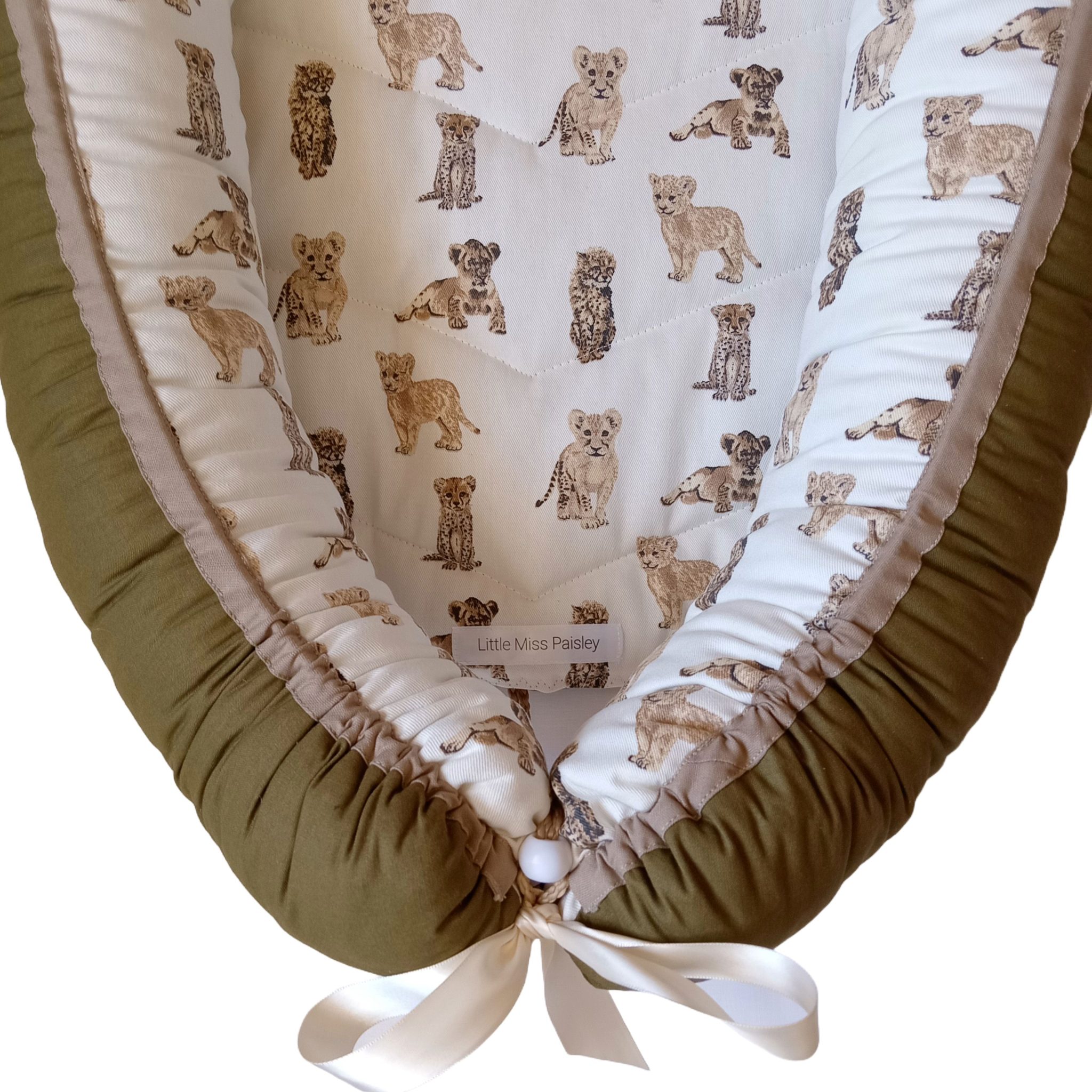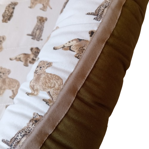 Babynest – Africn Safari – Lion & Cheetah Cubs – Olive & Beige Trim
