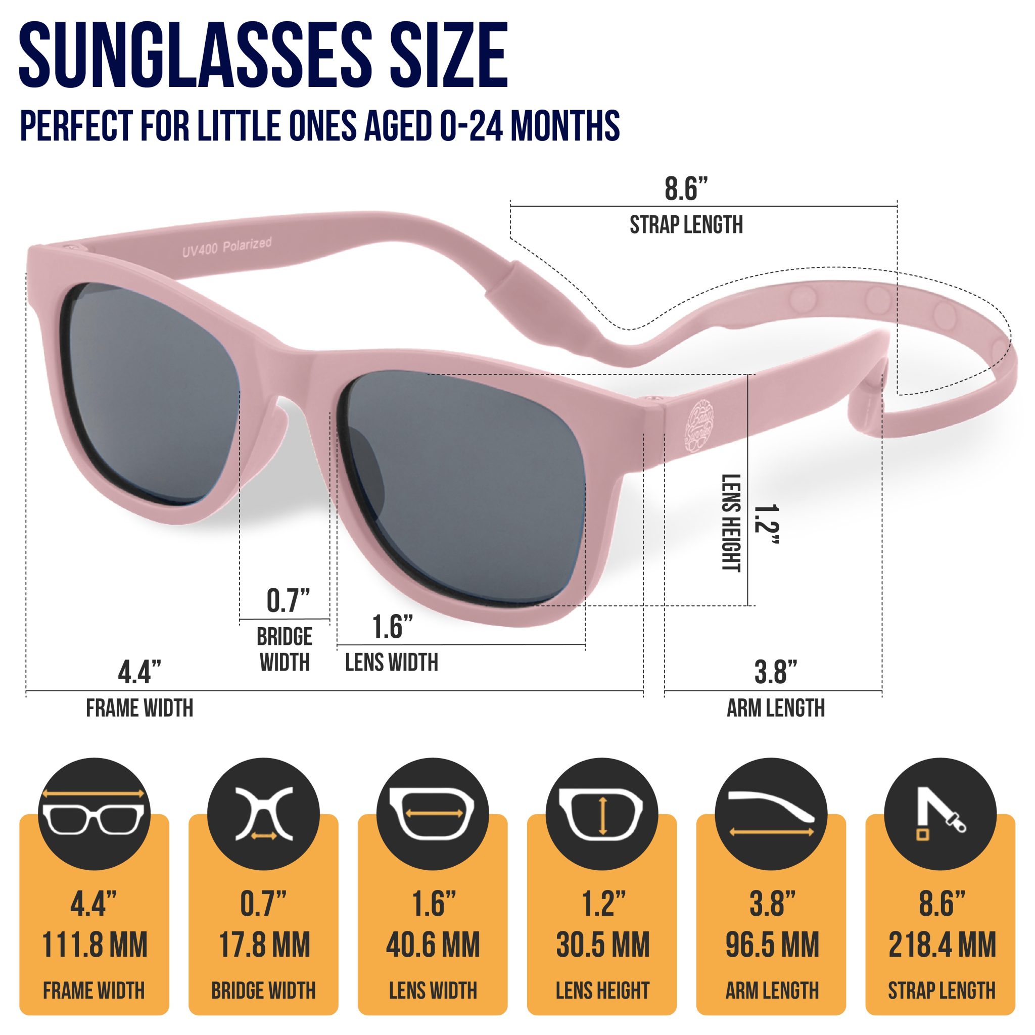 – UV Protection: Our baby sunglasses offer 100% UV protection with polarised lenses, fully shielding your baby’s sensitive eyes from harmful rays during every outdoor adventure.